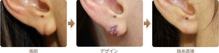 再度ピアスの希望があり、ピアス孔を温存する複雑なzigzagデザインとしました。