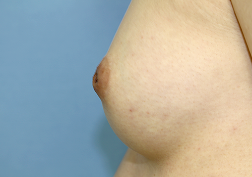 傷痕は乳頭乳輪のシワに隠れて術後3ヶ月程で殆んどわからなくなります。術後1ヶ月程度は、下着に圧迫されないようにプロテクターを装着します。
